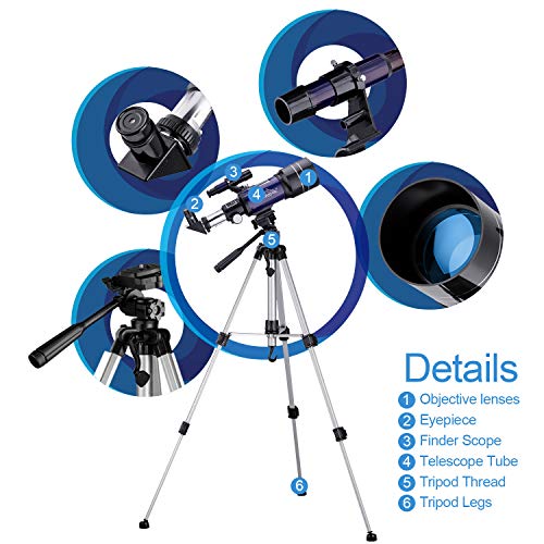 この天体望遠鏡は、70mmの大型対物レンズと高品質な光学ガラスを採用しています。光の透過率は98.9%に達して、他のメーカーの高級な天体望遠鏡と比較すると画像はよりクリアになり、見え方にも変化が出ます。操作は非常にシンプルなっている上に、ハンドホイールは人間工学に基づいて設計されている事から、天体観測初心者や子ども気軽に扱えます。価格も安いため、おすすめです。