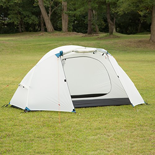 定番の小さなテントでソロキャンプで広めに使えるサイズです。前室も広めなので雨が降っても作業しやすく出入り口が2箇所あるので荷物を前室に収納しても出入りすく人気があります。耐水圧は1500mmでポールの材質はグラスファイバー製なので少し重たい4.4kgです。設営方法は2本のポールに前室ように1本追加させただけなので初心者でも簡単に組み立てられます。
