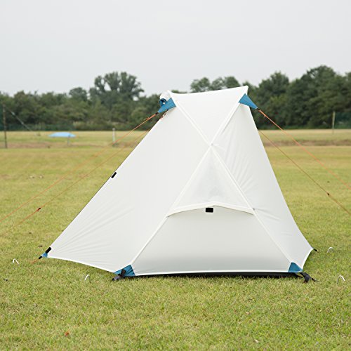 設営は付属のペグを打って、センターポールと玄関ポールを立てるだけで簡単。 ペグの本数は多い。 ナイロン生地が薄く軽量で良い。 色合いもアイボリーで自然な感じで良い。 内部は高さもあり広々してて良い。 雨漏りはしないが、シングルウォールなので家族5人で寝ると内側に結露する。