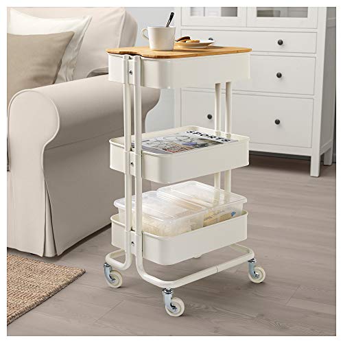 IKEA HOGSMAのまな板は、ふたとして利用することもできます。イケアから販売されているロースフルトワゴンと互換性があり、どの段のふたとしても使用可能です。