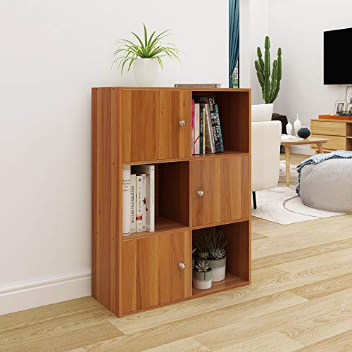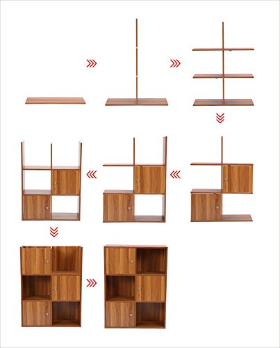 MULSH 本棚 スライド書棚 シングル スライド式本棚 木製 おもちゃ ブックシェルフ ラック コミック 文庫 収納 扉付き 6杯 ブラウン