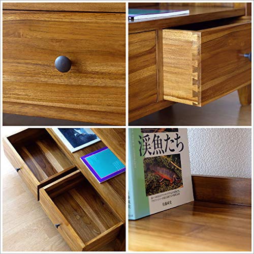 本棚 無垢 天然木 幅90cm ブックシェルフ 書棚 木製 飾り棚 オープンシェルフ アジアン モダン おしゃれ 引き出し付き 完成品 チークハイシェルフ【開梱設置】 [wat6847]