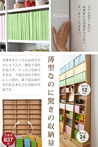 約700冊以上の文庫本を収納する事が可能な薄型タイプの人気ブックシェルフになります。計24枚の棚は1cm間隔で調節できるようになっているので、本サイズに合わせて変えられて便利です。