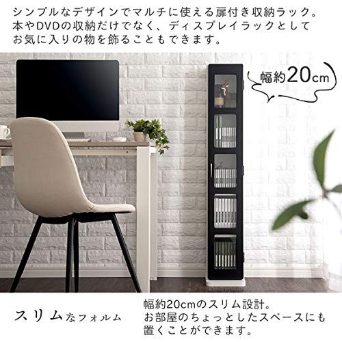 【完成品・組立不要】 鏡面 扉つき DVD収納 省スペース スリム収納 収納棚 収納ケース 扉付き 本棚 ホワイト