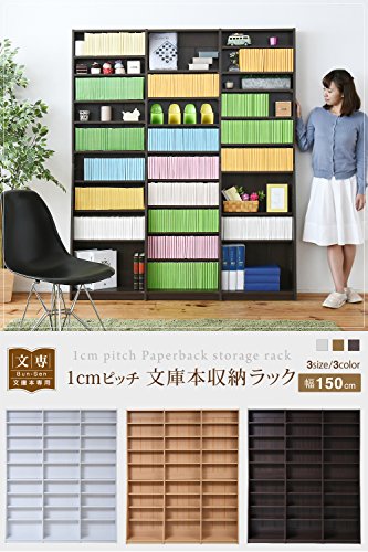 JKプラン 1cmピッチ 文庫本収納ラック 幅150 薄型 ワイド ブックシェルフ 高さ 180 木製 大容量 書斎収納 700冊以上 FRM-0011-DB