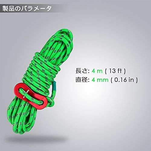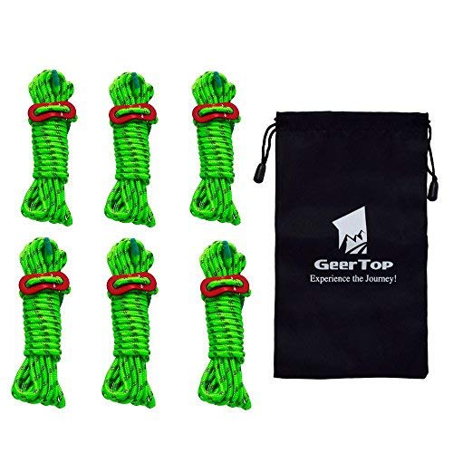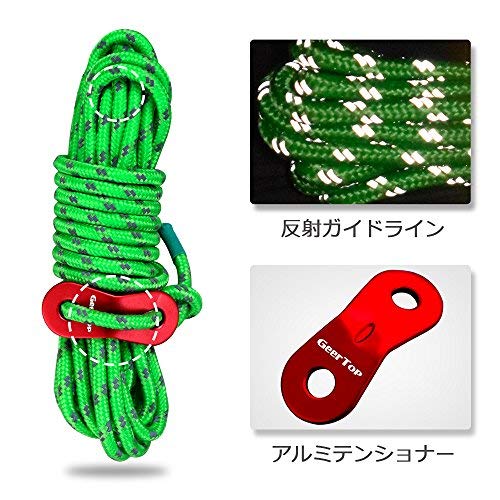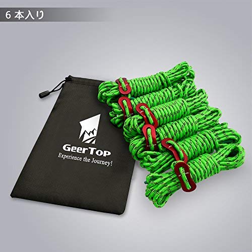 GEERTOP テント ロープ 反射材入りパラコード ガイライン ガイドロープ アルミニウム自在金具付き 耐荷重250kg 4mm * 4m 6本