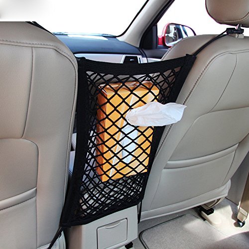 このカー用品は、車内にある小物をまとめて収納できる車載グッズです。車内を散らかさずに済み、綺麗な状態をずっと保ちやすく、おすすめです。留め具はフック式で、強いゴム製の紐を使用しています。