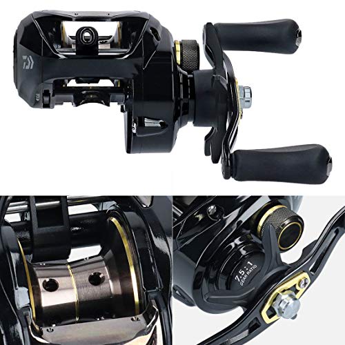 ダイワで人気のリールといえばタトゥーラTW。TWシステムは非常に面白いシステムで、ラインガイドが広がってストレスフリーでラインが出ていきます。実際に使ってみると、ラインがバサバサとまとまって出ていっているような感覚です。そのため、飛距離も簡単に出すことができます。ブレーキシステムも、マグネットブレーキとなっているので、簡単にセッティングすることができます。ギア比の種類が3種類あります。8.1のハイギアを使うと巻き取りスピードがとても速いので、ルアーの回収が非常に楽です。ドラグ力は5㎏なので、60アップのバスを釣っても十分にファイトができるでしょう。