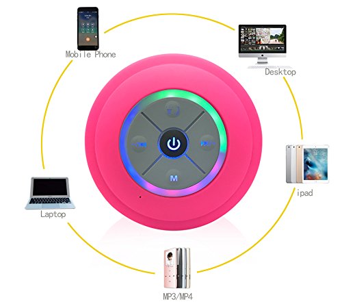 ポータブルBluetoothシャワースピーカーLEDライトの色変更。ipx4防水取り外し可能な吸盤、ハンズフリースピーカーフォン、MicroSDスロットforローカル再生& FMラジオ。 ブルー BTS-09