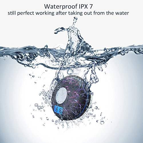 hrome Bluetoothシャワースピーカーipx7防水浴室スピーカーとFMラジオ、NFC、LCD表示、時計、クールひび割れバックライト、強力な粘着力吸盤ハンズフリー通話