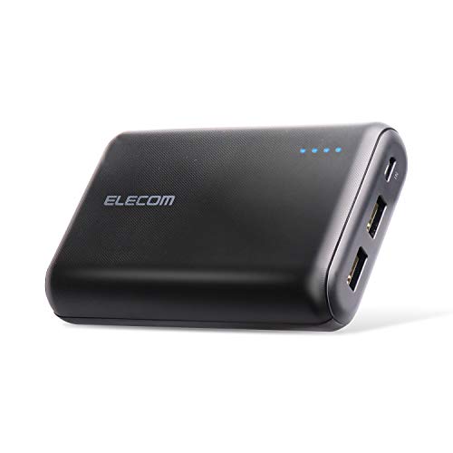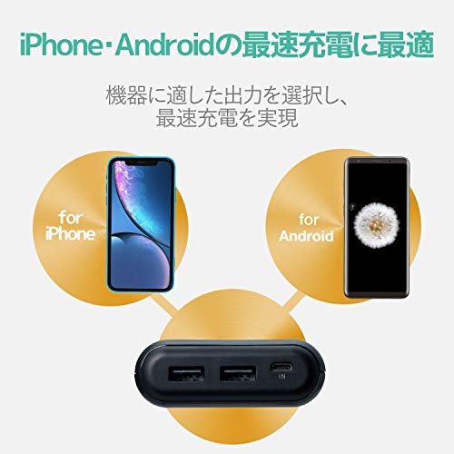 エレコム 10050mAh Type-C入力 2ポート 充電 モバイルバッテリー 大容量 リチウムイオン電池 おまかせ充電 まとめて充電 タイプC入力対応 10050mAh 合計 3.6A USB-A iphone 出力2ポート PSE適合 ブラック DE-C15L-10050BK