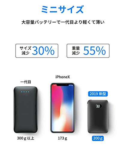 モバイルバッテリー Mini 大容量 10000mAh 薄型 軽量 iOS/Android/type-c