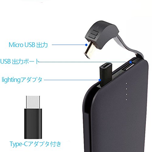 Luxtude 5000mAh モバイルバッテリーtype-c ケーブル内蔵 薄型 軽量