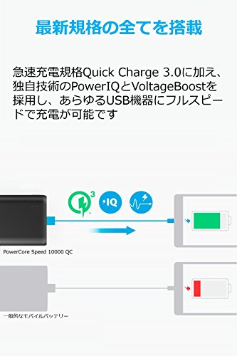 Anker PowerCore Speed 10000 QC (10000mAh 大容量 モバイルバッテリー)【PSE認証済/Quick Charge 3.0対応 / Power IQ搭載】 iPhone/iPad/Android各種対応 (ブラック)