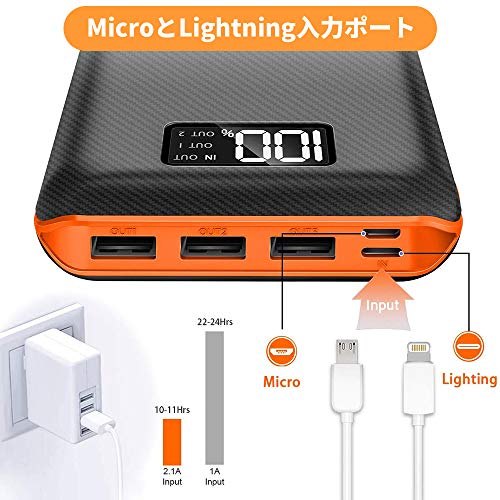 モバイルバッテリー 大容量 24000mAh LCD残量表示 3USBポート 旅行/出張/アウトドア