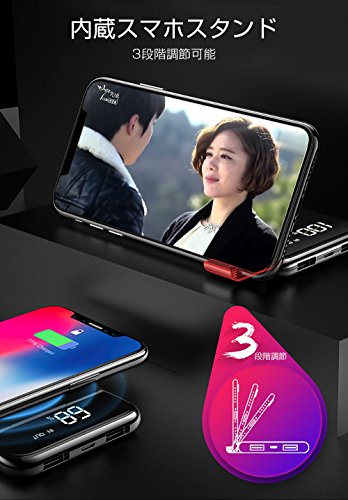 モバイルバッテリー Qi ワイヤレス充電 10000mAh スタンド機能付