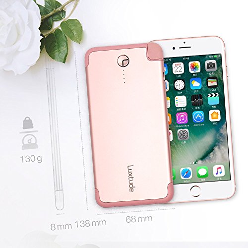 Luxtude 5000mAh モバイルバッテリーType-C ケーブル内蔵 薄型 軽量 Android持ち運び充電器 Huawei P10 Lite/P20 LIte/ASUS ZenFone4 MAX/Sharp AQUOS sense lite など対応(ローズゴールド)
