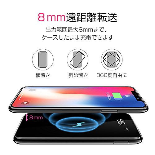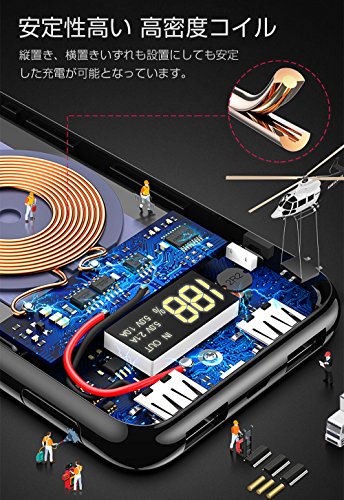 このモバイルバッテリーの容量は最強クラスの10000mAhになっていて、QI受電技術を採用しています。スマホをモバイルバッテリーの上に置くだけで、充電できるようになっていて、人気が高いです。ケーブルを接続する手間が省けて、便利です。液晶ディスプレイにはモバイルバッテリーの残量や出力効率、出入力状況などが表示されます。一目で確認できて、おすすめです。