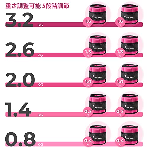 カラーも、女性好みの明るいピンクなど5食から選べます。運動中も長くしっかりと止めてくれるベルトがついて、重りの落下防止機能もついているため、安心してトレーニングできる商品です。