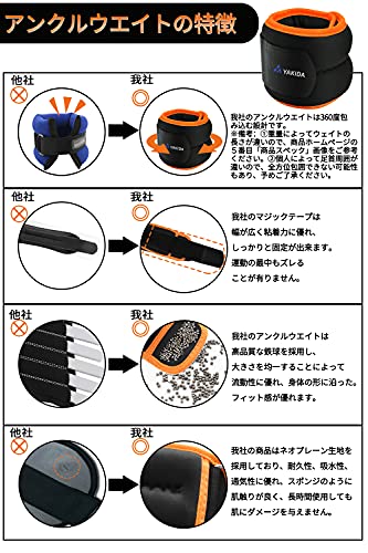 アンクルウェイトは、片側0.5kg、1.0kg、1.5kg、2.0kg、3.0kgと種類が豊富で、お子様でも0.5kgなら、習い事などの訓練にもなる用途の広い便利な商品です。運動で負荷がかかっても、重りが偏りにくい構造になっており、滑りにくく着け心地のよい商品となっています。