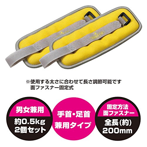 エクササイズなどでも手首からずれ落ちにくく、薄いリストで目立たないので外の運動にも取り入れやすくなっています。イエロー、ピンク、ブルー、ブラックの計4種類の色から選べるも魅力です。(※カラーによって重量が異なります)