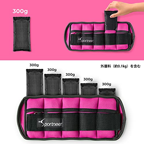 1つの袋が300gから594gの重さになっていて、片側で最大2.97kgの重さをかけられる、負荷調整が簡単なアンクルリストウェイトになります。自分の筋力や鍛えたい状態を考慮してウェイトを自由に調整できるのは、非常に便利です。