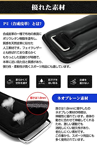 撥水性と伸縮性、および耐久性に優れたネオプレーン素材を、ふんだんに使用しており、長時間の運動後も快適なアンクルウェイトです。肌触りもよいので、肌荒れの心配も少なく、安心して使えます。
