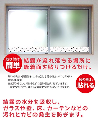 それにこの結露対策グッズは結露が流れ落ちる所に吸着面を貼りつけるだけで良く、結露の防ぎ方はとても簡単です。湿気が凄く、結露がたくさんでも、しっかりと水分を吸収してくれて、壁やガラスのカビや汚れが発生する事を防止・予防できます。