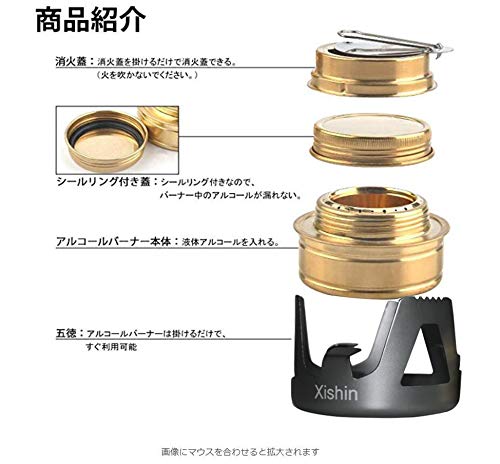 アルコールバーナー 五徳セット シングルバーナー ゴトク 収納袋 アルコールストーブ 登山 キャンプ バイク ツーリング ソロキャンプ 携帯 野外フェス 防災 キャンプ クッカー ステンレス