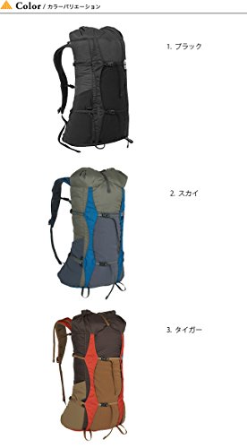 密着感を高められるチェストベルトやウエストベルトも付いていて、必要に応じてウエストベルトは外す事も出来て便利です。色の選び方では、ブラックとスカイとタイガーの計3種類の色から選択可能なバックパックです。