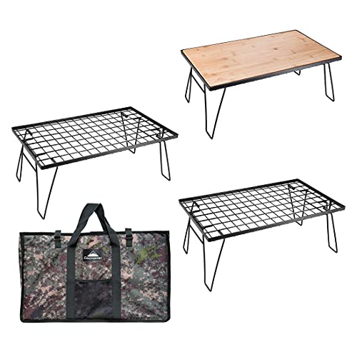 ラックのおすすめポイントは、自分のキャンプスタイルによって組み合わせられるセットがある点です。フレームだけでなく竹製の天板、専用の収納袋がセットになっているものもあります。