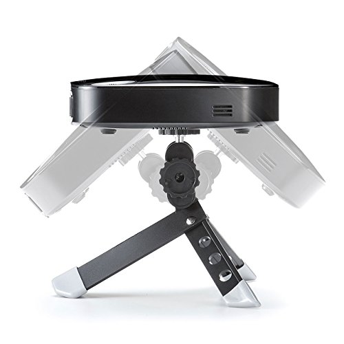 レンズ部分が可動式になっているため他のメーカーのモバイルプロジェクターと比較すると、より簡単に角度調整を行う事ができて、三脚を用意しなくても良くなります。