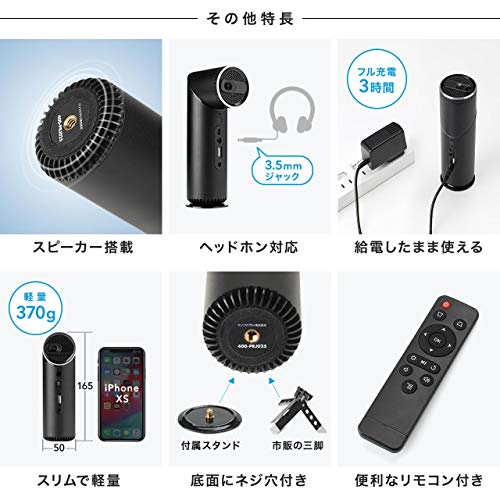 モバイルプロジェクター 小型 軽量 30ルーメン HDMI バッテリー内蔵 スピーカー内蔵 手のひらサイズ ファンレス 三脚対応 [400-PRJ023]【サンワダイレクト限定品】【送料無料】