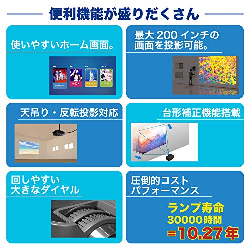 投影するためのライトには動作寿命が長いLEDライトが採用されており、約50000時間持ちます。販売価格が安い事と相まって、コストパフォーマンスも高く、非常に人気です。