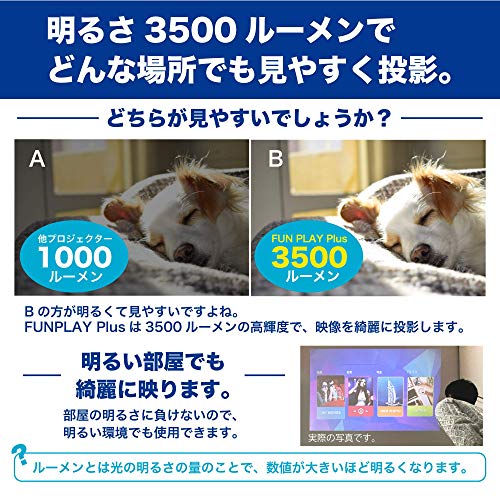 FunLogy モバイルプロジェクター FUNPLAY Plus 高解像度 3500 ルーメン