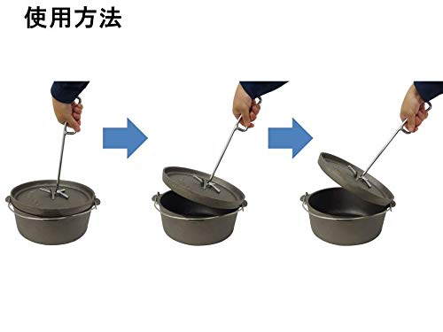 そしてこのダッチオーブンにはリッドリフターがセットで付いています。使い方は簡単で、直接手で触れずにフタを移動させる事が可能なため、火傷をする可能性を少なくできます。火で熱していて、ダッチオーブンの温度が上がっている際にはとても役に立ちます。その他には持ち運び袋もあり、キャンプ場に持って行く時や保管する際におすすめです。