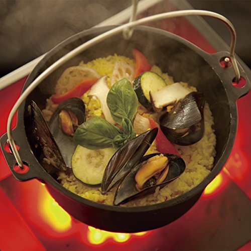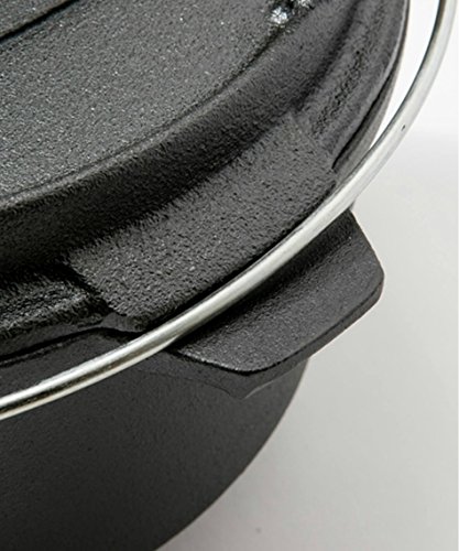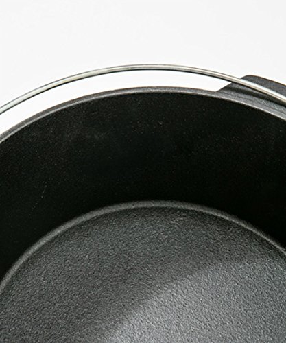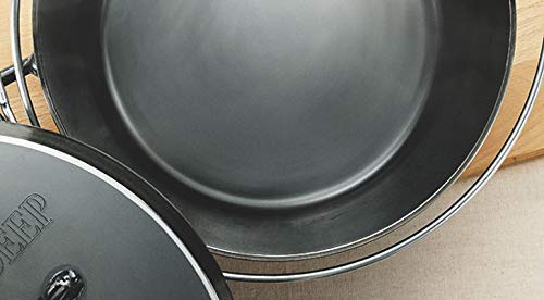 このダッチオーブンのサイズは鍋径30.5cm×深さ13cmで、重量は8.8kgです。機械加工により、ダッチオーブン本体とフタのベストなかみ合わせを実現しており、高い熱伝導を引き出す事に成功しています。バーベキューなどで、どんな食べ物の素材でもしっかりと火を通す事ができて、他のメーカーのダッチオーブン・鍋と比較すると料理をより円滑に進められます。4.5mm厚の黒皮鉄板も採用しているため、錆びにくく、手入れもしやすいです。