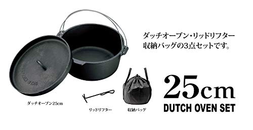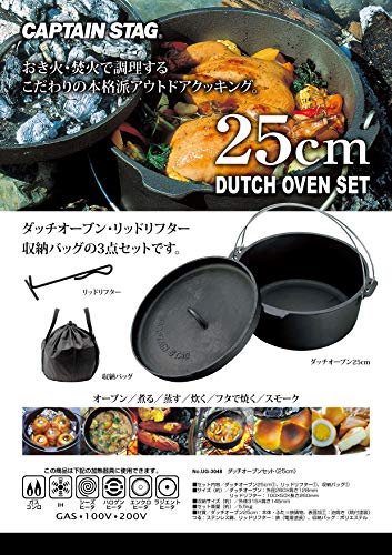 ダッチオーブンセット 25cm UG-3048 鉄鋳物 バッグ付き リッドリフター付き アウトドア キャンプ キャプテンスタッグ