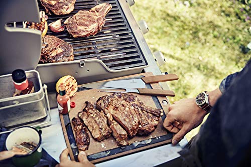 カッティングボード素材には木の温もりが感じられるオーク材を使い、隅にはブランドのロゴも施されています。包丁には丈夫で錆びにくいステンレスを使っています。シンプルなルックスでアウトドアで使いやすい人気のまな板セットです。