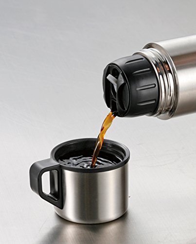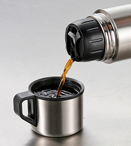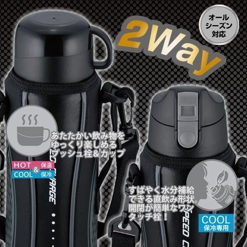 1リットルと大容量で、素材にステンレスを採用している真空断熱構造で軽量な2wayボトルになります。蓋の役割を果たすコップを使ってドリンクを飲む方法と、ワンタッチで開けて口をそのままつけて直飲みする方法ができるコップ付き水筒です。