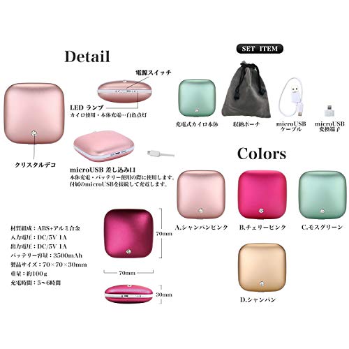 出典: https://shop.r10s.jp/kotubanshop/cabinet/1049/1049-ekxl-ksh5.jpg充電式カイロの充電時間 / 約6~7時間