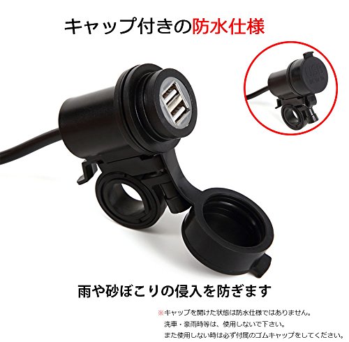 KiloNext バイク用 USB 充電器 USBポート 2個付き 急速充電 防水キャップ ブルーLED付き 5V 2.1A/1A