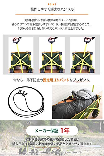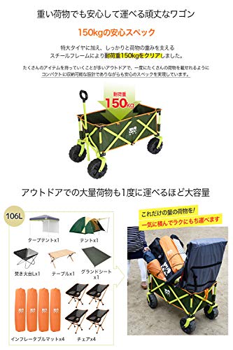 WAQ アウトドアワゴン キャリーワゴン キャリーカート 折りたたみ 4輪 頑丈 耐荷重150kg 大容量 106L