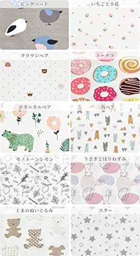 手芸店でよく見かける端切れセットなどを組み合わせるのもおすすめです。また、伸びの良いスムースニットも薄手のものならおすすめです。布が厚いと縫いにくくなるのと、着用サイズが小さくなってしまいます。型紙より少々大きめに作って、縫い合わせる前にサイズを調整してください。