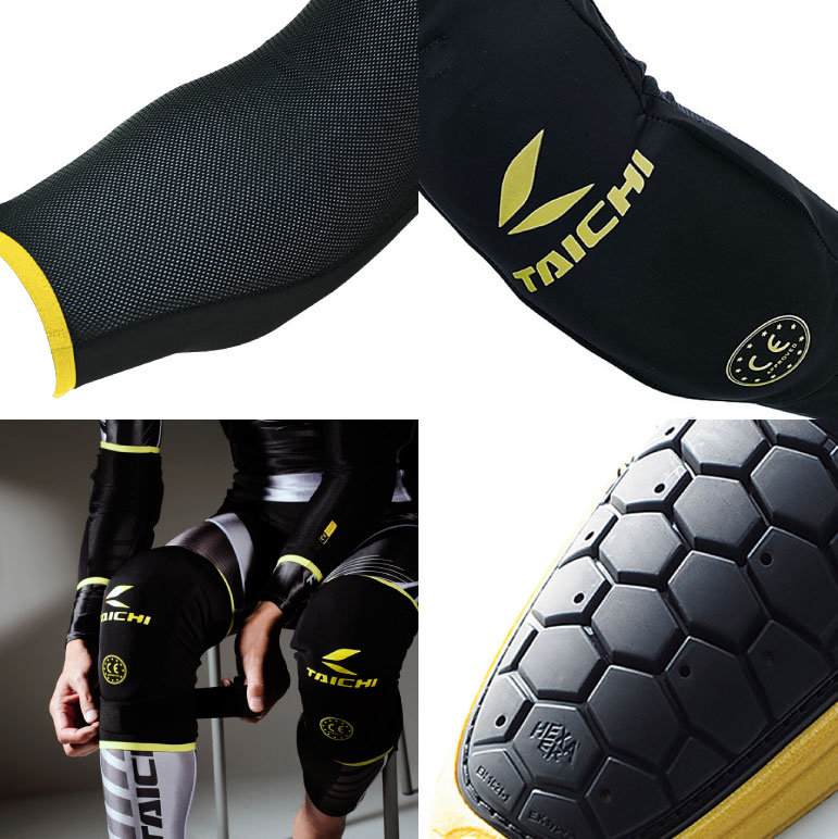 ストレッチコットン素材ですので、膝の曲げ伸ばしでツッパリ感がありません。膝の軟質系のプロテクターは着脱できますので、ツーリングの目的に合わせやすいですね。
