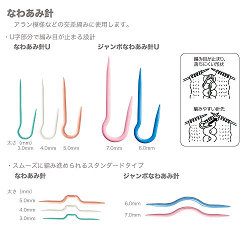 はじめて縄編みを編む方は、縄編み針があるとやりやすいでしょう。8目の縄編み程度までなら、慣れてくれば縄編み針を使わずに作ることも可能ですが、持っていると複雑な縄編み模様作りに便利です。