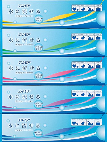カミ商事 エルモア 水に流せるティッシュペーパー 180組/箱 1パック(5箱)