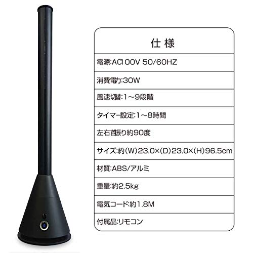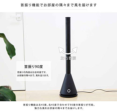あらゆる方向へとワイドに送風可能な首振り機能を搭載したタワー型の扇風機になります。収納式リモコンも付いていますので、遠くの方から操作も可能です。一般的な扇風機と違い縦に長い扇風機なので、場所もとらずに設置できます。
