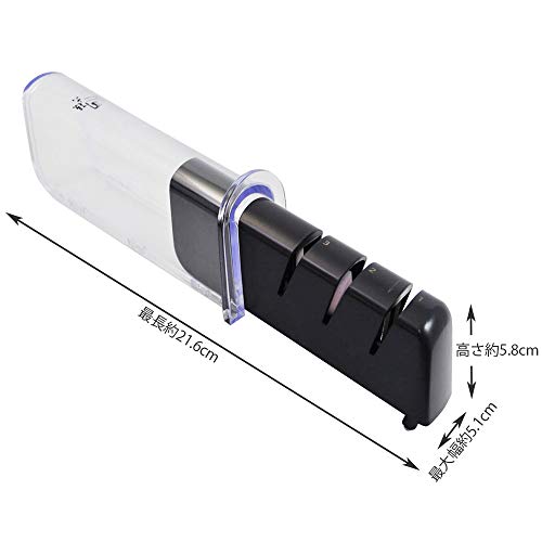 右から順番に数回ずつ、同じように滑らせていけば包丁が研げる簡単仕様。はじめて使うという人でも迷わず切れ味が復活します。透明なカバーがついているので、使わない時も衛生的に保管できるのも嬉しいですね。サイズは幅14.1センチ奥行き5.1センチ、高さ5.5cmとコンパクトボディで収納場所も取りません。