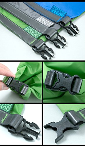 縫い目を完全にシームテープで塞ぐ加工を施して、防水性を向上させているのも特徴です。ワンタッチでカチッと簡単に広げられるバックル付きで、荷物の取り出しも簡単なシンプルな使い方のスタッフサックです。